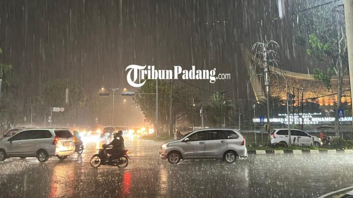 Keadaan yang sama juga terjadi di kawasan Masjid Raya Sumatera Barat. Curah hujan tinggi turun beberapa saat setelah rangkaian shalat sunnah bersama dan ceramah besar usai digelar sekitar jam 22.00 WIB.